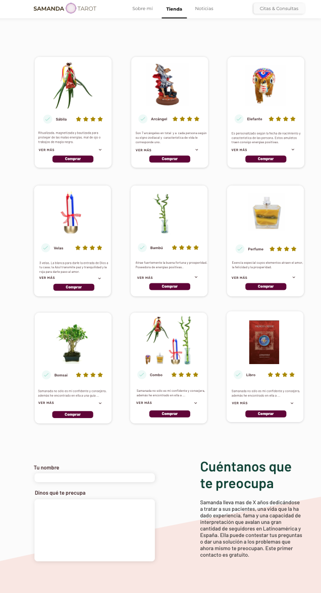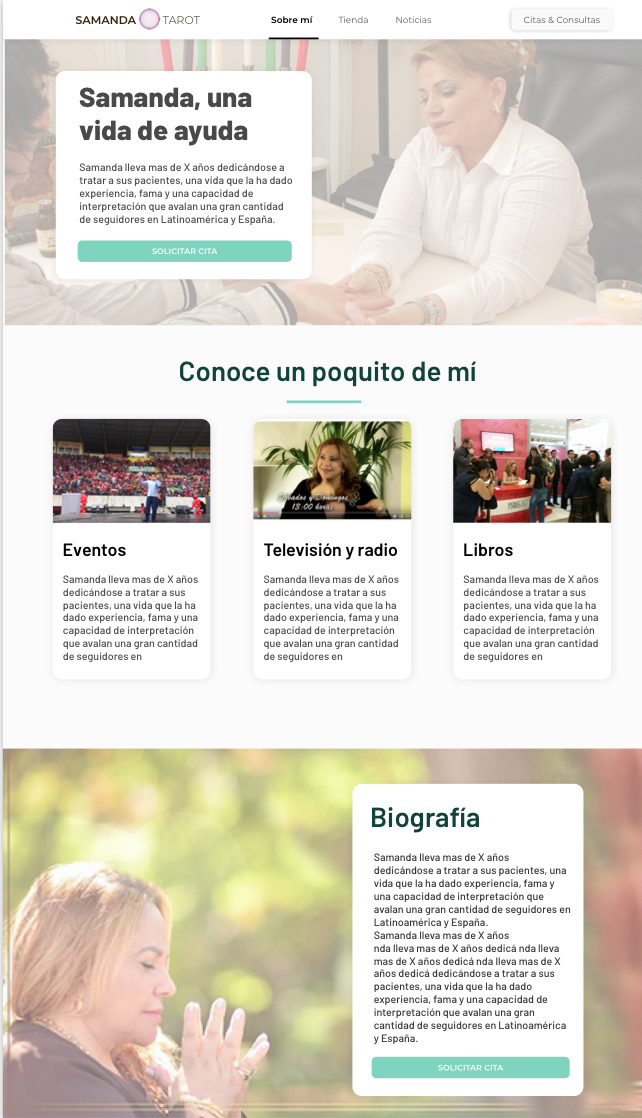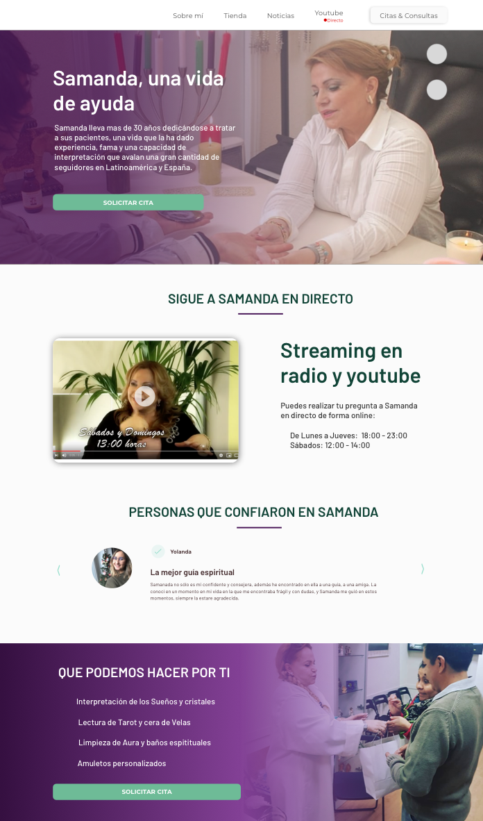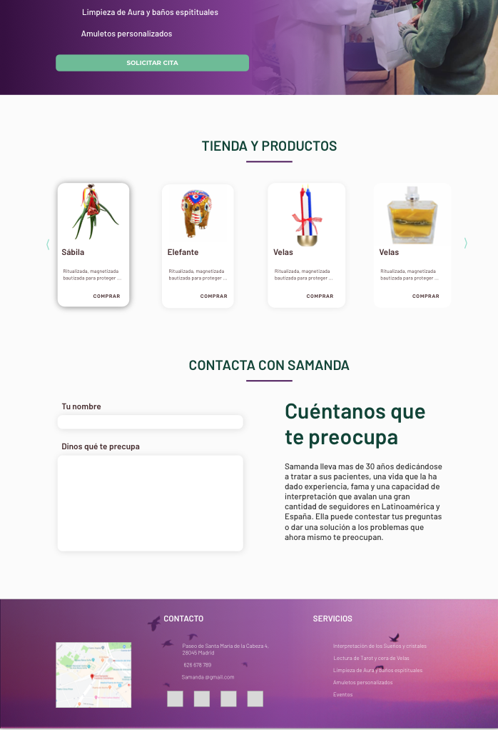 Samanda Tarotista es un proyecto desarrollado en Magnimedia. los requisitos principales eran crear una imagen más atractiva que atrajera un nuevo cliente tipo, ofrecer servicios nuevos y crear un portal atractivo huyendo de la imagen tradicional del Tarot.